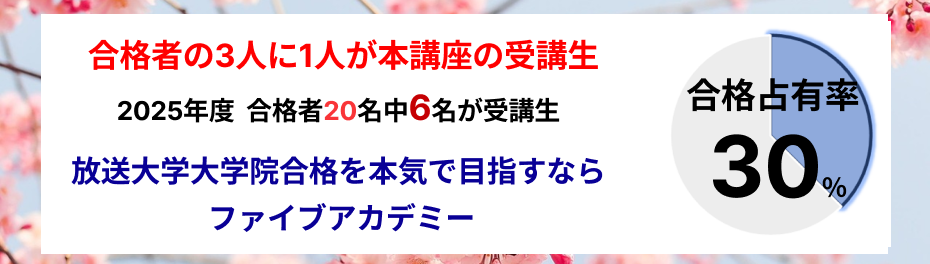 放送大学大学院臨床心理学プログラムの出題傾向を徹底的に分析した対策講座です。筆記試験対策と研究計画書・志望理由書対策で、働きながら臨床心理士を目指す社会人でも、効果的かつ効率的な学習ができる内容になっています。また、講師による学習進捗面談で、試験日まで学習やモチベーション維持をしっかりサポートします。
